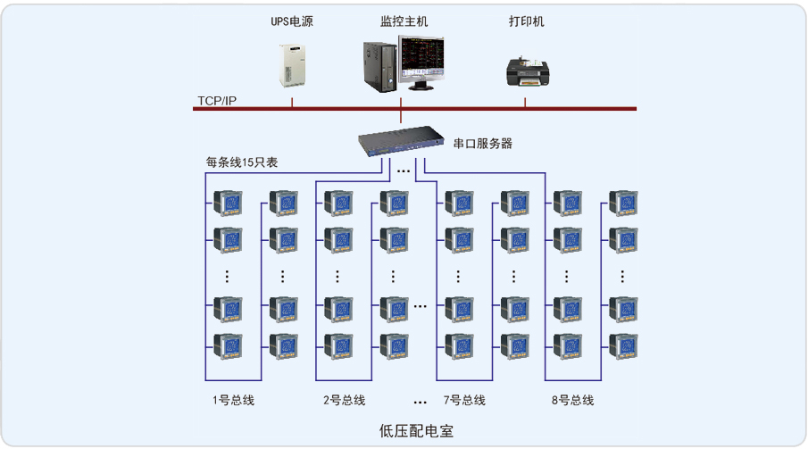 淄博歐木特種紙業(yè)有限公司四期電力監(jiān)控系統(tǒng)針對(duì)淄博歐木特種紙業(yè)有限公司內(nèi)四期低壓配電室開關(guān)柜內(nèi)安裝的約120只安科瑞智能電力儀表,監(jiān)控室位于配電室內(nèi)。為滿足配電室統(tǒng)一監(jiān)控的要求,配電室現(xiàn)場(chǎng)安裝安科瑞公司網(wǎng)絡(luò)電力儀表通過(guò)屏蔽雙絞線手拉手相連至串口服務(wù)器,串口服務(wù)器通過(guò)五類線接入后臺(tái)主機(jī),進(jìn)行數(shù)據(jù)傳輸。